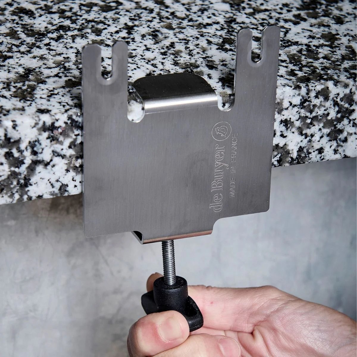 Doppio sistema di fissaggio: morsetto per piano di lavoro spesso 55 mm e ventosa Tazze