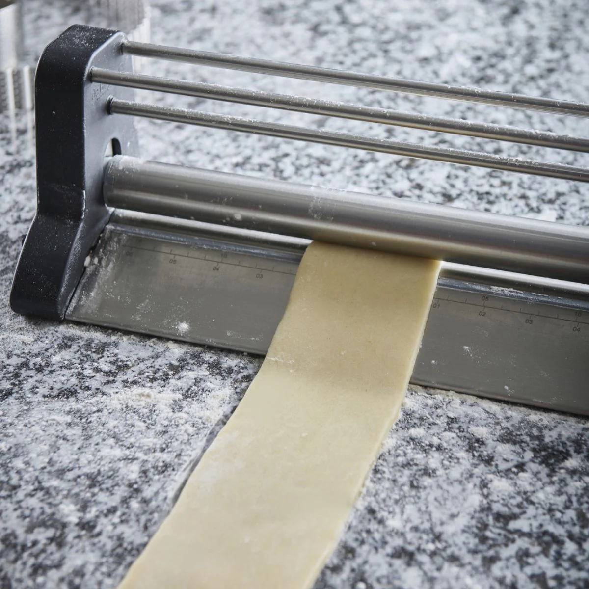 Ideale per professionisti esigenti e appassionati, il kit stendipasta multiimpasto PRO è progettato per gestire un’ampia varietà di impasti con la massima precisione: pasta sfoglia, pasta per pizza, pasta fresca, pasta frolla o pasta dolce, fondente. Il nostro stendipasta manuale semplifica le attività in cucina e in pasticceria, offrendo al contempo il pieno controllo sullo spessore dell’impasto. Lo stendipasta è stato testato e approvato da chef che hanno riscontrato un notevole risparmio di tempo e fatica. Progettato per soddisfare gli standard professionali, stende l’impasto in modo efficiente, senza sprechi di tempo o sforzi inutili.