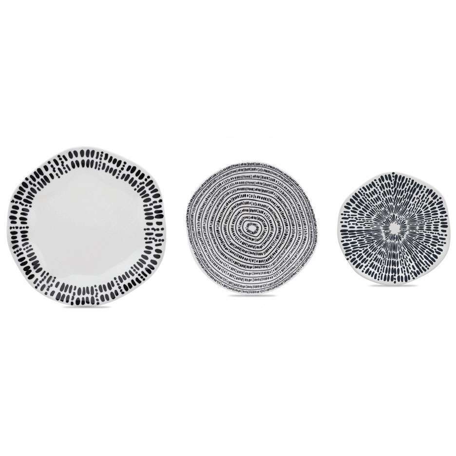 18-piece Ink gift set with decoration reminiscent of black ink dashes contains 6 dinner plates, 6 soup plates and 6 fruit plates. Porcelain plates suitable for use in the dishwasher and microwave.