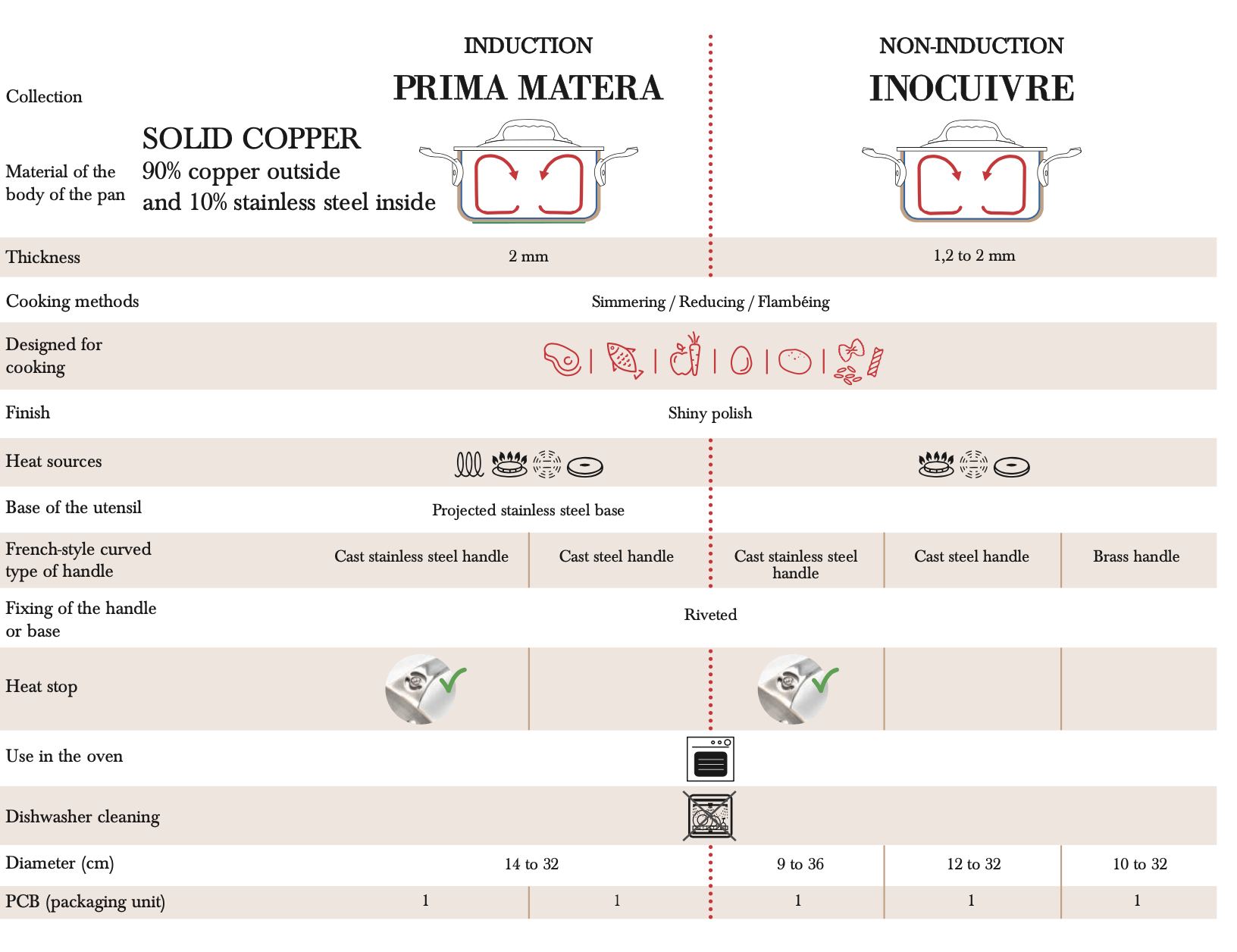 Il rame utilizzato nella linea Prima Matera è particolarmente indicato per cotture di precisione come salse, riduzioni e caramello, dove il controllo della temperatura è fondamentale.